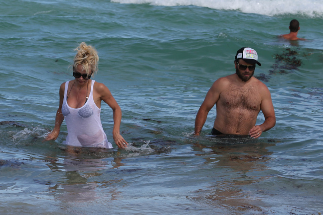 Απορίας άξιο είναι βέβαια για ποιο λόγο η Pamela βούτηξε στη θάλασσα φορώντας το φόρεμά της το οποίο βρεγμένο πια αναδείκνυε τα πλούσια προσόντα της.